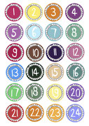 Bastelsets für originelle Adventskalender und bunte Adventskalenderzahlen zum Ausschneiden.